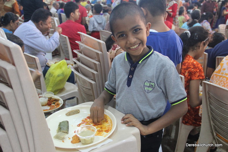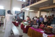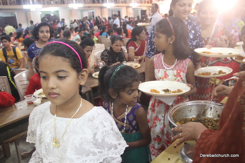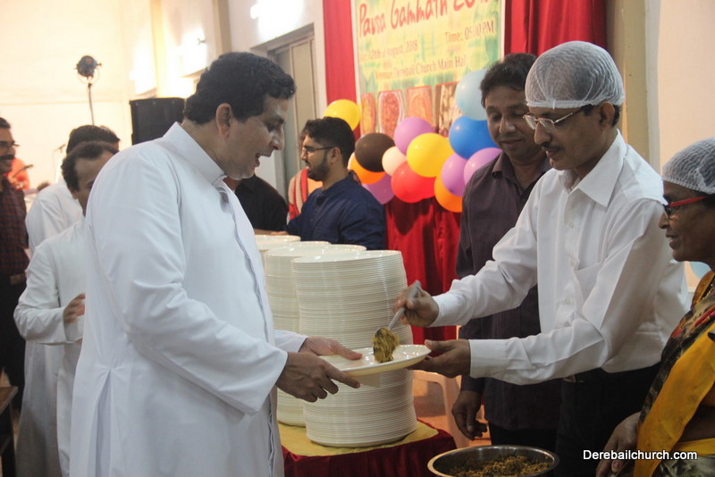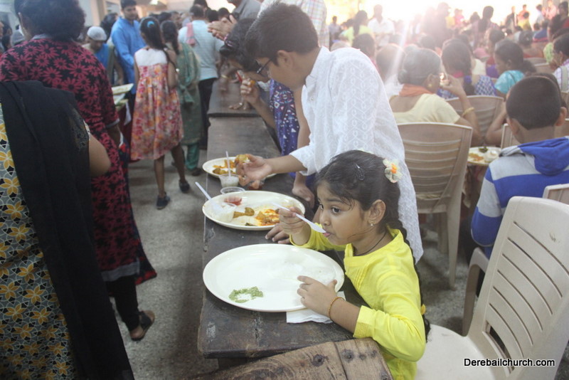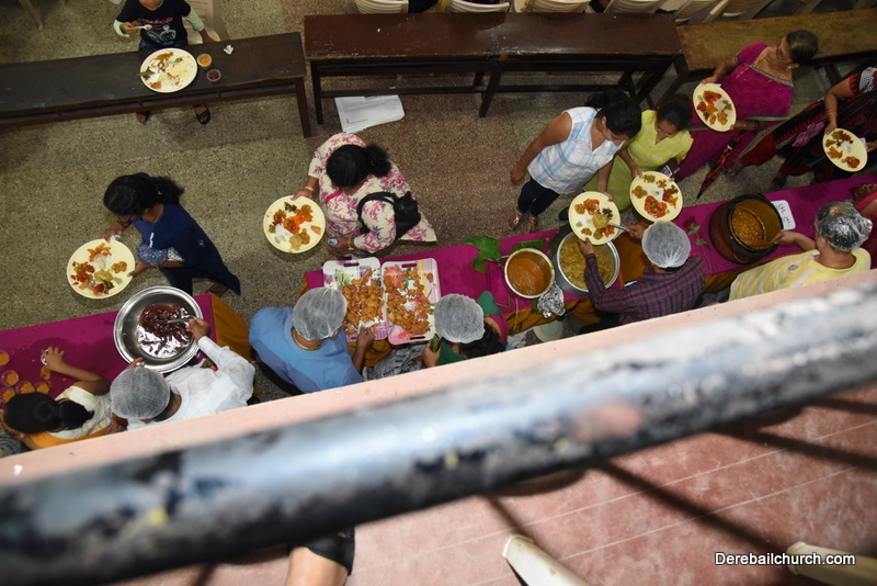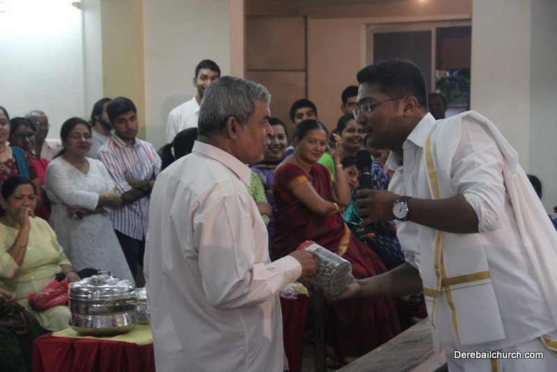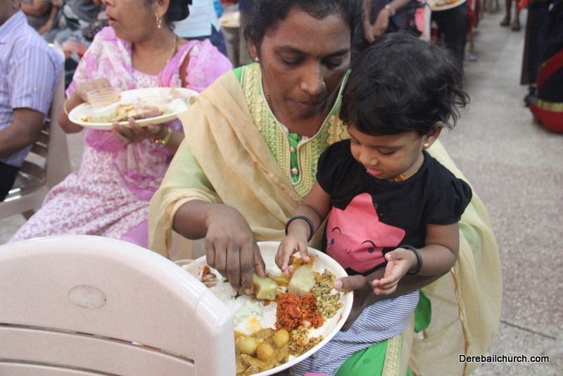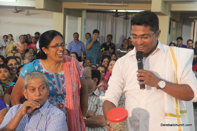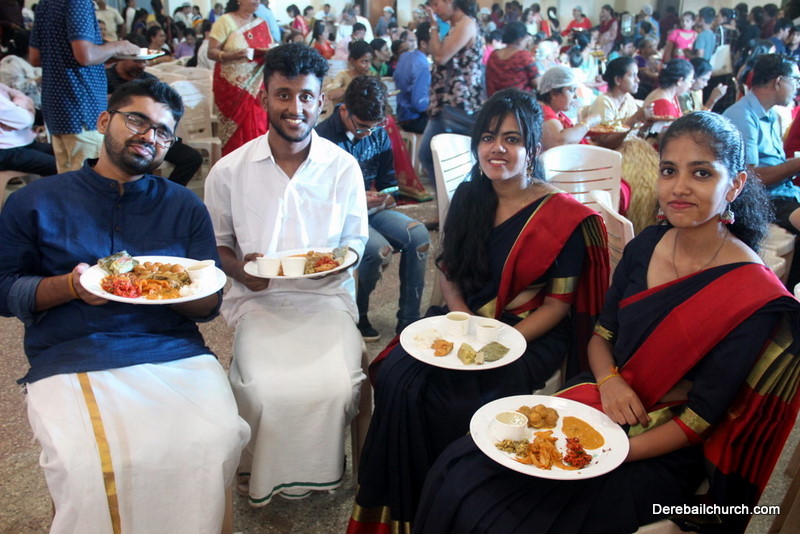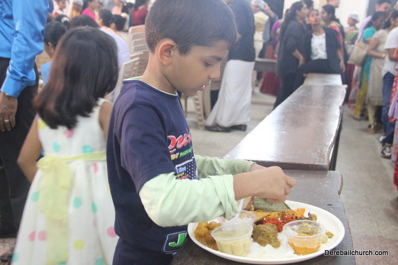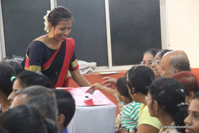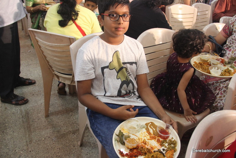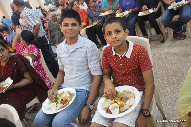 Cultural program began with a live band performance. Many talented parishioners and various associations of the Most Holy Redeemer Church, Derebail had beautifully put up a cultural program. The cultural program included - Dance, skit, Jokes, Mad ad, live singing, music, Mando etc. Spot games were conducted especially for enthusiastic audience. 22 ward Gurkars, Sponsors and all those who toiled for the success of the programme were felicitated with mementos and flowers. A collection box was circulated by YSD among the audience so as to meet the expenses of the event. As soon as the cultural program came to an end, Rev. Fr. Gration Alvares prayed over the meals.