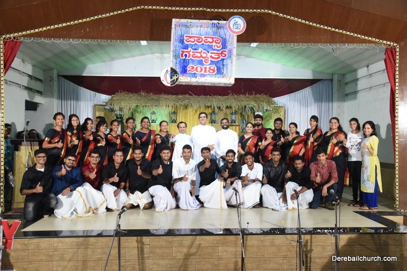 The guests then were led towards the food counter followed by the parishioners. There were altogether 23 delicious food items prepared by the ward members of Derebail Parish. The crowd expected for the event was 600 but the actual crowd who witnessed Pavsa Gammath 2018 was about 1000. Apart from Derebail parishioners, there were many outside Parishioners as well. Everyone enjoyed the evening as well as the food. They, Yuva Spandan Derebail YSD - ICYM were appreciated and applauded for the wonderful execution of the marvelous event. No doubt that Pavsa Gammath 2018 has become a grand success and a memorable one. The entire event was compeered by Mr. Sheldon Crasta. The backdrop on the stage and the entrance of the hall was ornated keeping in mind the tradition associated with this event. Most of the crowd including the youth wore the traditional attire. Pavsa Gammath 2018 concluded with Baila led by the live band group and DJ Prajwal Sequeira.