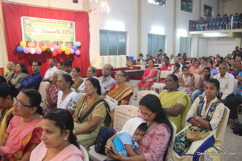 Ivy Melisha D' Souza - President of YSD welcomed the gathering. The guests who were present on the dais were given a floral welcome. Mrs. Lizzy Lasrado beautifully spoke in detail with regard to the Pavsa Gammath and the tradition associated with it .She spoke of the manner in which people looked forward to this season. Rev. Fr. Ronald Prakash D' Souza (Fr. Rons Ajekar) spoke a few words and congratulated Yuva Spandan Derebail YSD - ICYM for putting up such a unique and wonderful program. Rev. Fr. Austin Peter Peres addressed the gathering and spoke a few words with regard to Pavsa Gammath. The symbolic inauguration of Pavsa Gammath 2018 was then done. The guests along with Animators of Yuva Spandan Derebail pulled the ribbon off the box which was filled with confetti. As the ribbon was pulled, the confetti's began to fall as a symbol of rain and within the box displayed "Pavsa Gammath 2018". Ms. Sandra Pinto - Secretary of YSD then proposed the vote of thanks and thus the inaugural program concluded.