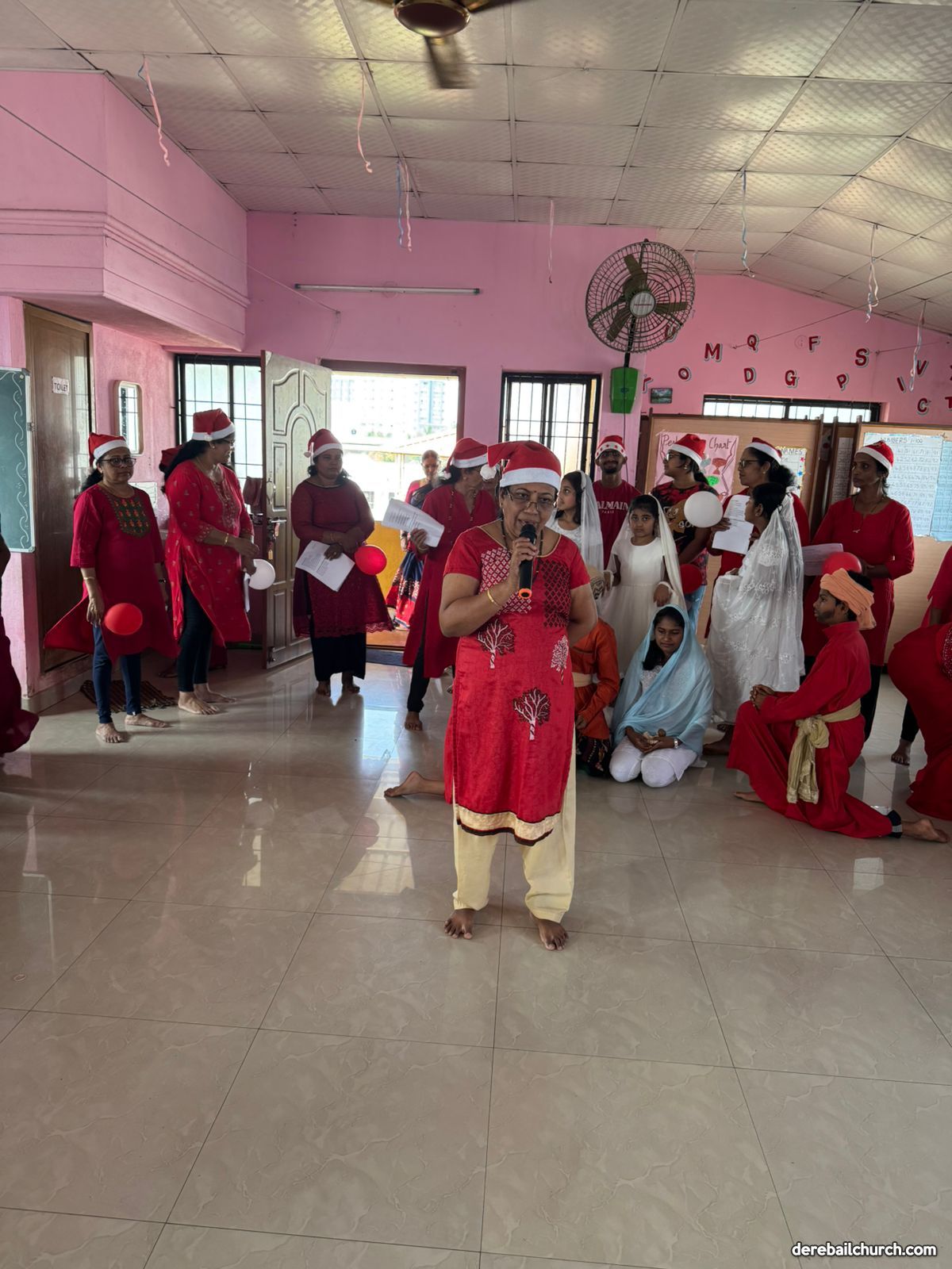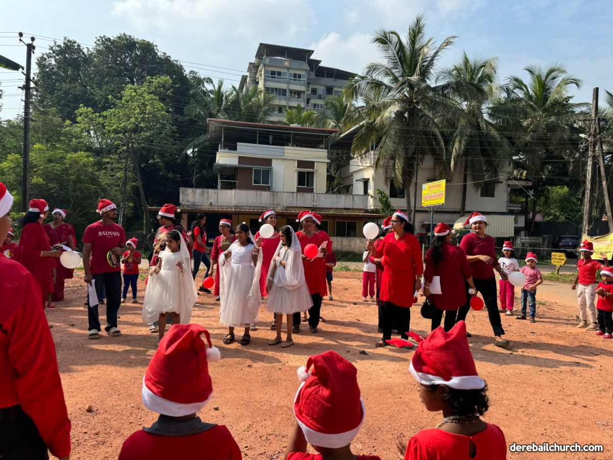 On the Christmas Eve that is., 24th December, to share the joy of Christmas, the Parapade Upper Ward members organized Christmas Carol Singing at Kinderjoy Kindergarten School, Malemar. A group of 20 ward members reached the kindergarten at 10:30 am. The 55 students of the kindergarten, teachers and few parents were present at the venue.
