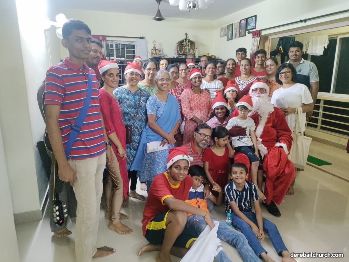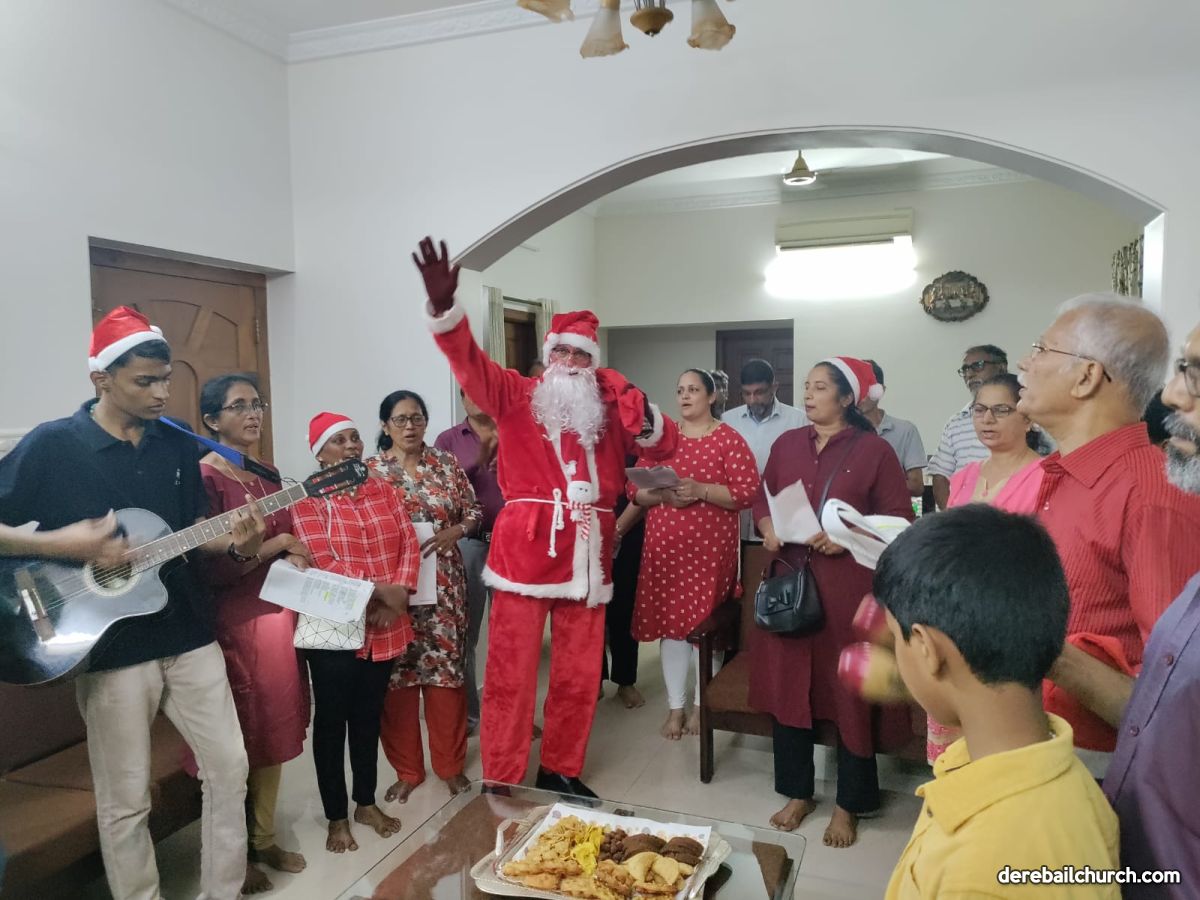 Gerald Castelino began the carol singing with an opening prayer. The group of more than 30 ward members – kids, young and elders visited each house on three consecutive days and covered 38 houses. A konkani and an English Carol followed by Feliz Navidad was sung in each house.