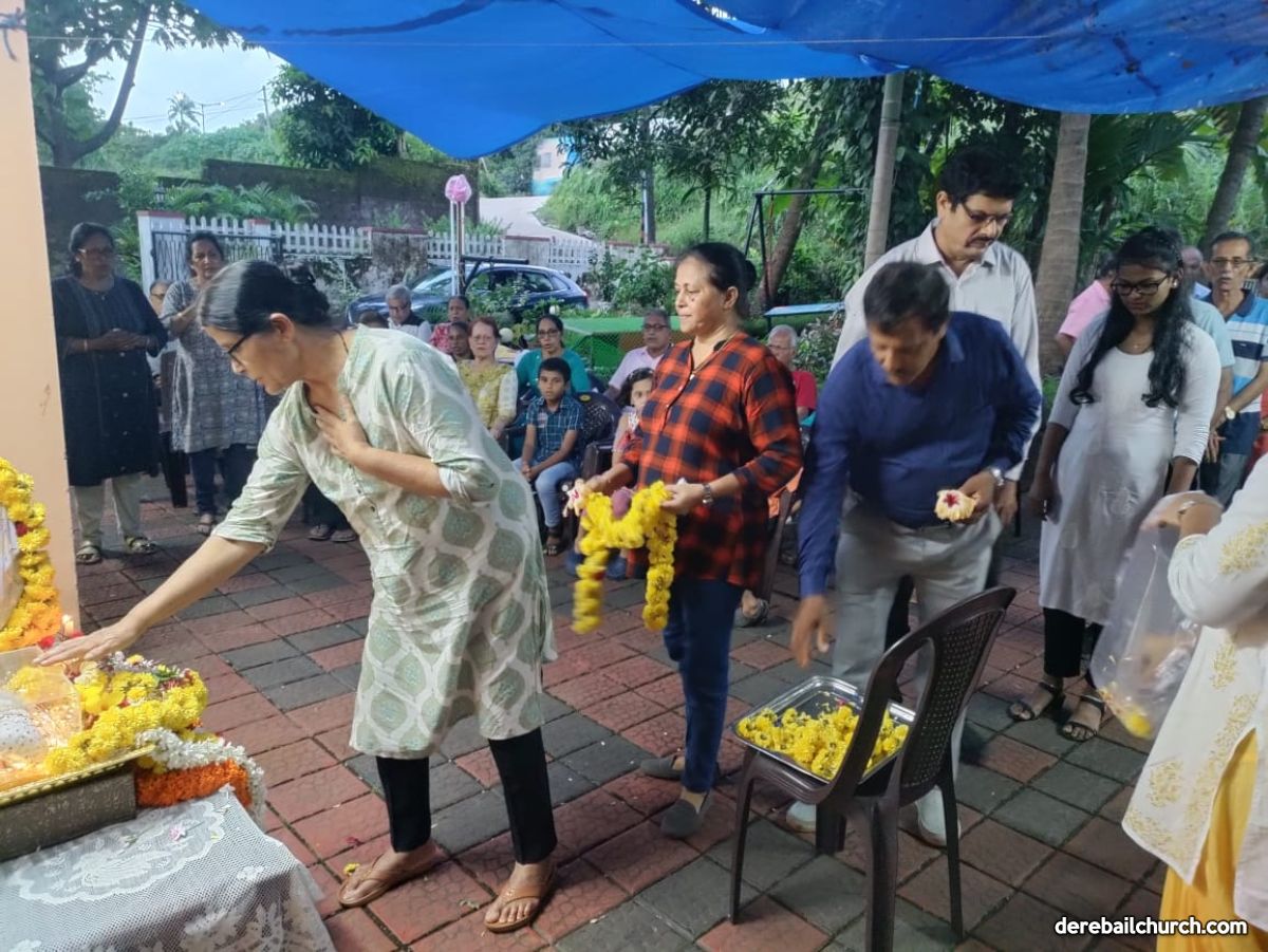 The members of Kottara ward celebrated Nativity Feast on 15 September  2024 at the residence  of Mr. & Mrs.Ronald Aileen Pinto. The celebration was preceded by the ward meeting at 4:30 PM. Mr. Michael Dsilva, the ward gurkar, extended a warm welcome to all the ward members. The ward members then offered flowers to Mother Mary and sang hymns. After that, all the ward members drank the roce mixed with new corn in a traditional way. All the members participated with great devotion.