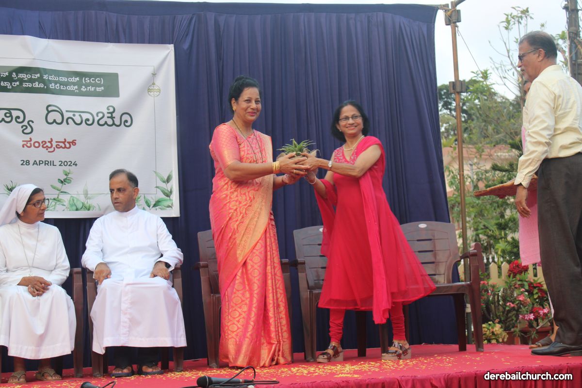 The dignitaries Rev. Fr. Joseph Martis, the parish priest, Mrs. Sheela D'Souza, vice president of the Parish Pastoral Council, Mr. Denzil Pinto Secretary of Parish Pastoral Council, Mr. Anil Patrao 21 Ayog Convener, Sr. Bernis Mother Superior of St. Ann's Convent Derebail, Helen D'Souza and Mr. Jeethan Castelino ward representative, Mr. Richard D'Souza Convener of Ward Day, and Mr. Michael D'Silva Ward Gurkar graced the occasion.